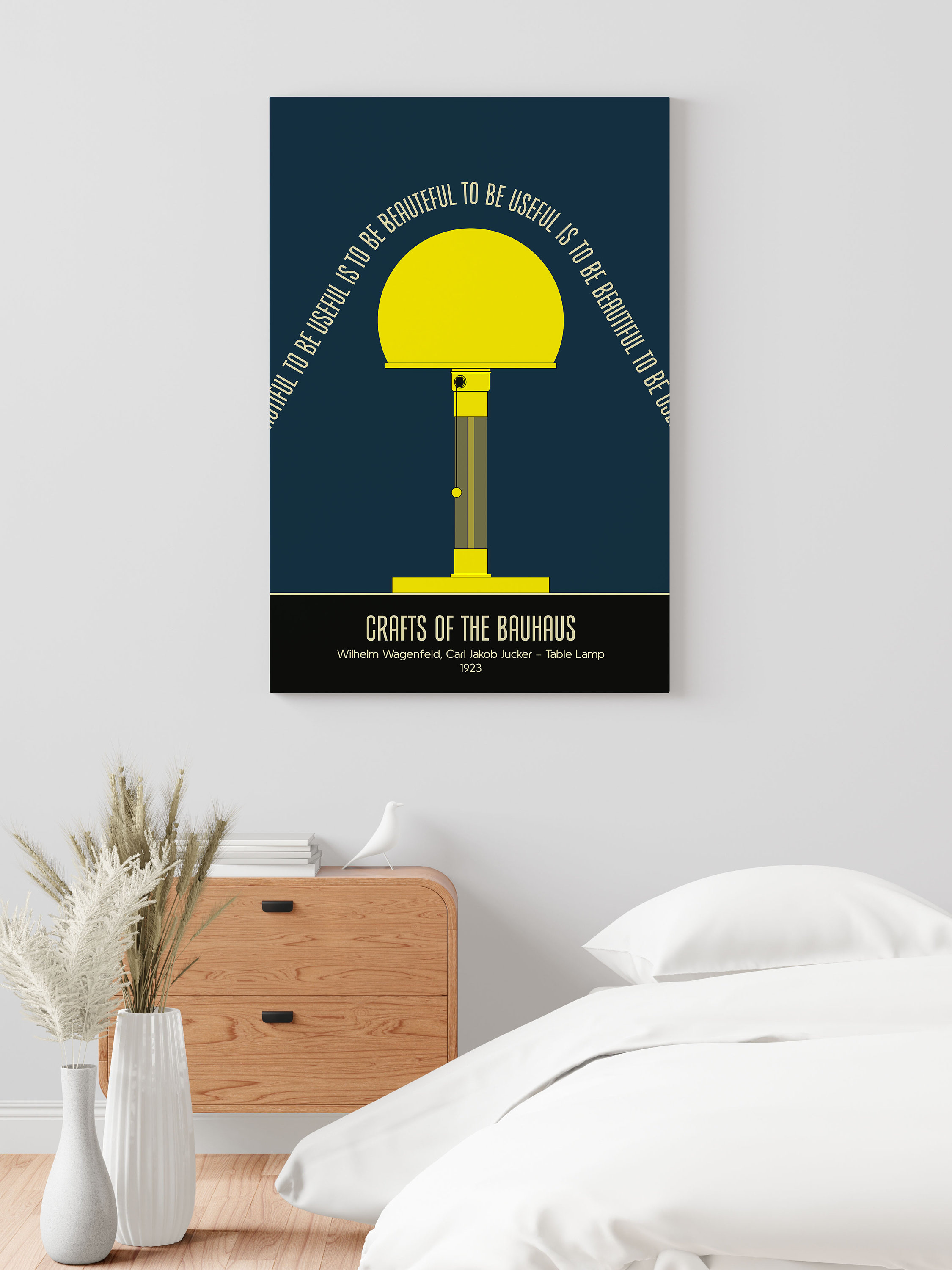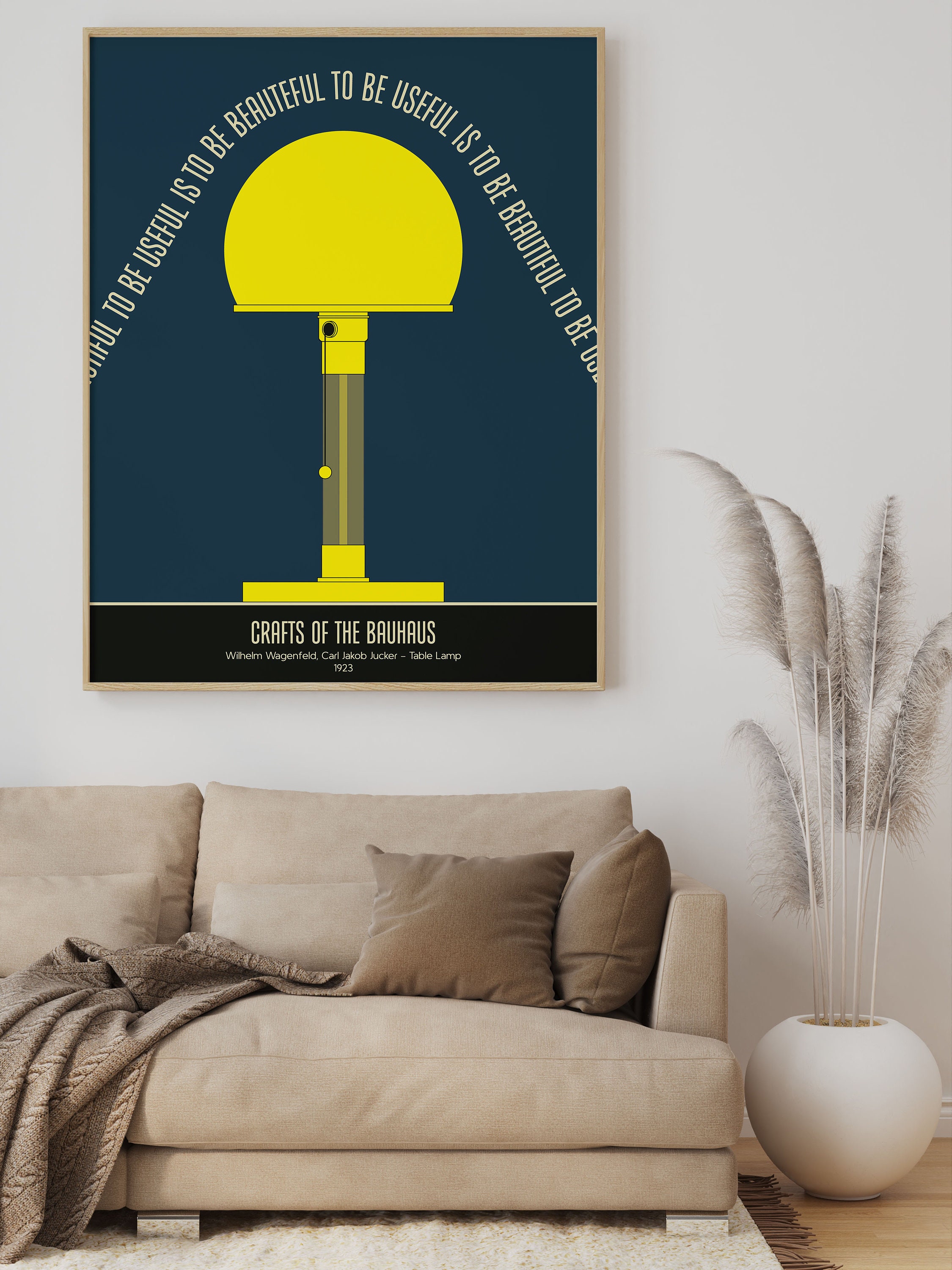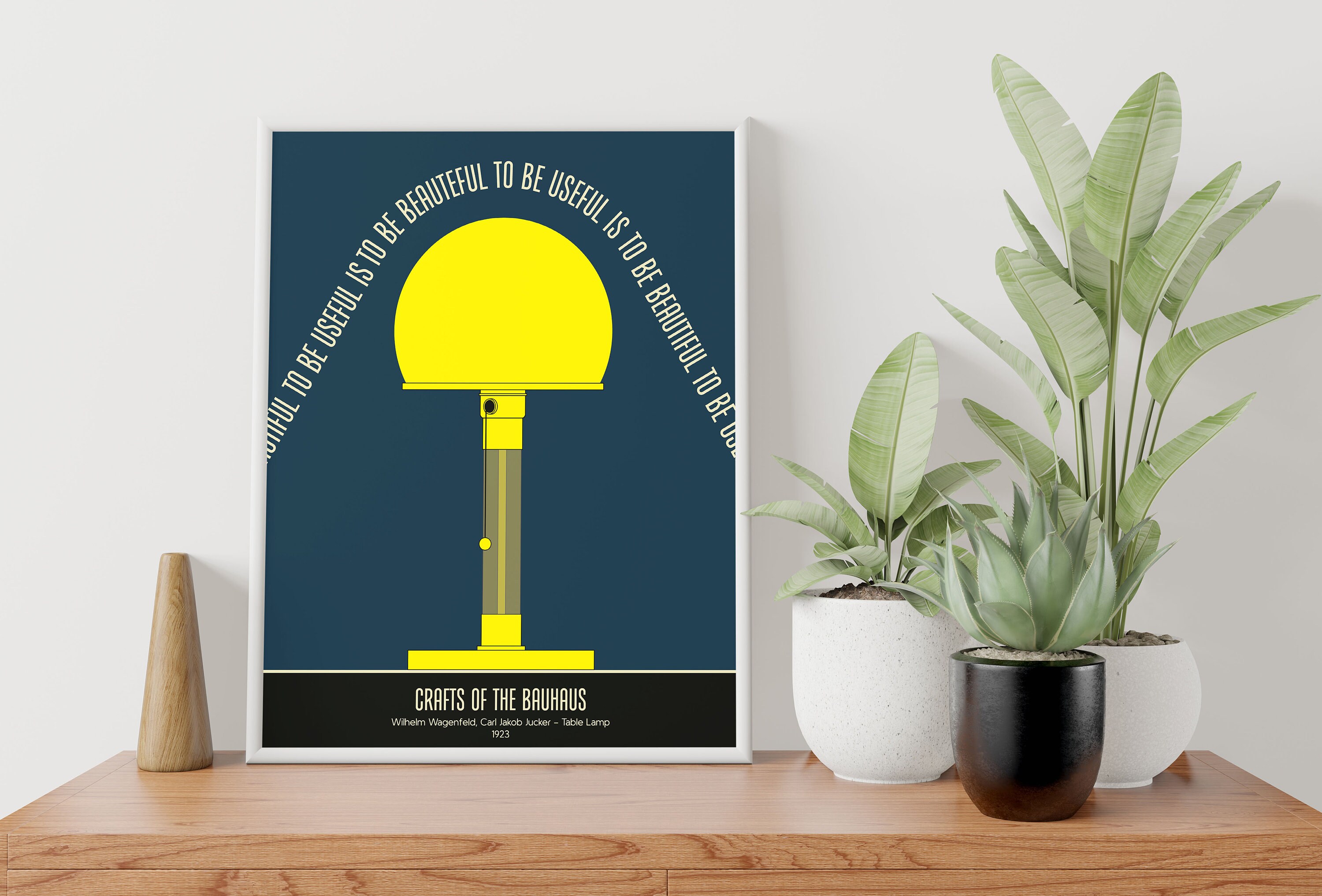 The "Bauhaus lamp" symbolizes a fundamental notion established by the prominent Bauhaus school, founded in 1919 by architect Walter Gropius, which taught a contemporary synthesis of both fine and applied arts. Wagenfeld and Jucker accomplished "both maximum simplicity and, in terms of time and resources, best economy" by employing simple geometric shapes—circular base, cylindrical shaft, and spherical shade. The lamp's functioning elements are visible, and the opaque glass shade, which was formerly reserved for industrial lighting, aids in light diffusion.