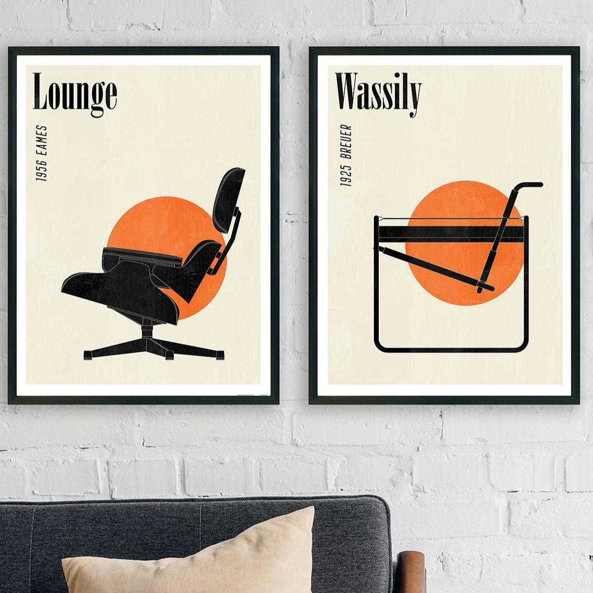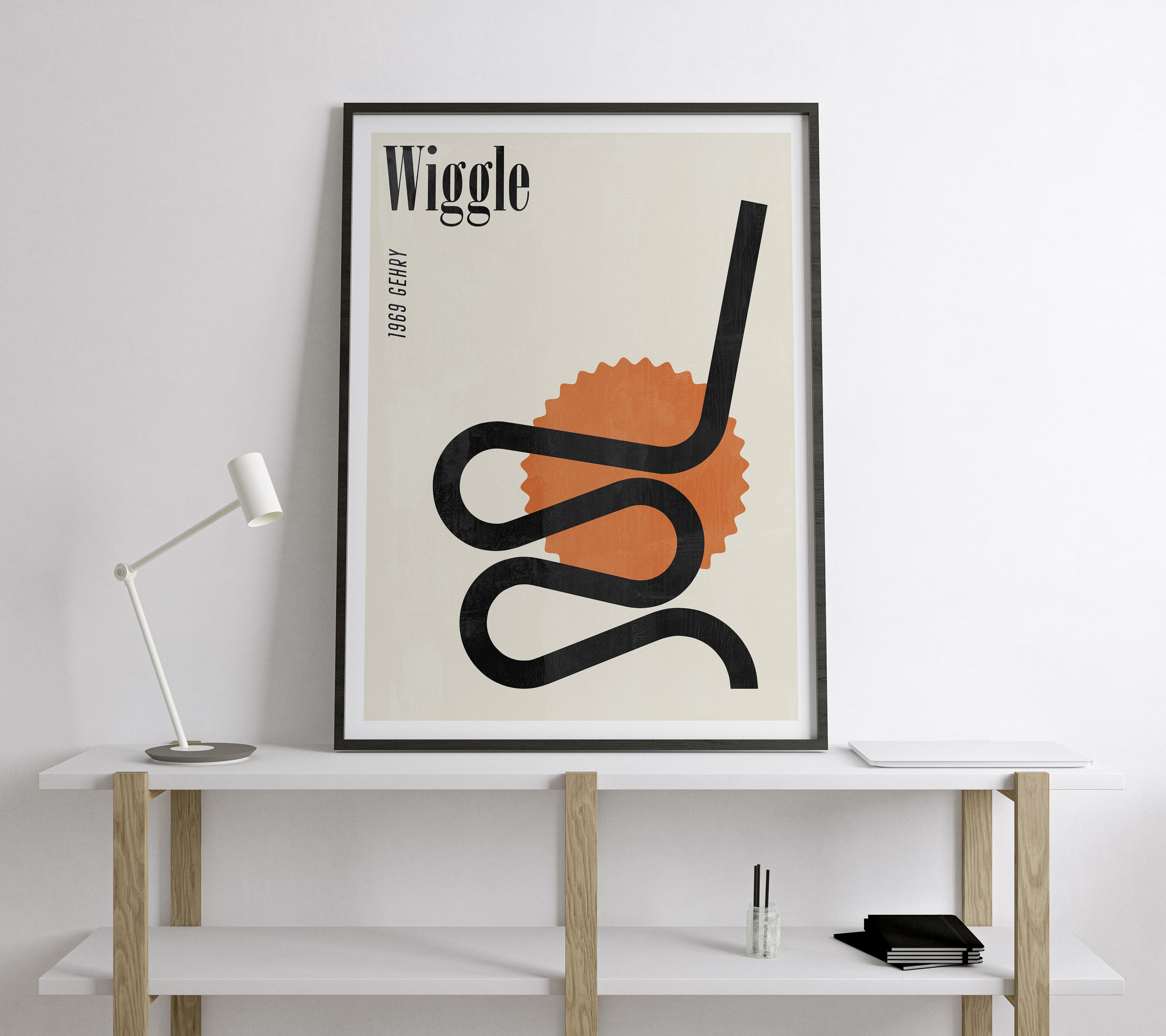 This set of posters is inspired by the Midcentury Modern movement and the furniture designs created by architects. In this volume, there are five of the most famous chairs designed by architects like Marcel Breuer (Wassily - 1925) from the Bauhaus school, Mies Van Der Rohe (Barcelona - 1929), Charles and Ray Eames (Eames Lounge - 1956), Arne Jacobsen (Swan - 1958) and FrankGehry (Wiggle - 1969). These pieces of art are a clear representation of the modernist movements during the middle of the XX century. One might ask why is Gehry here, but I think his chair reflects the same philosophy that was behind the modernist movement, specifically the need for simplification and usage of industrial materials for objects of everyday use. The simplicity of the Wiggle chair and the uncommon industrial material - cardboard, gives it an unforgettable experience.