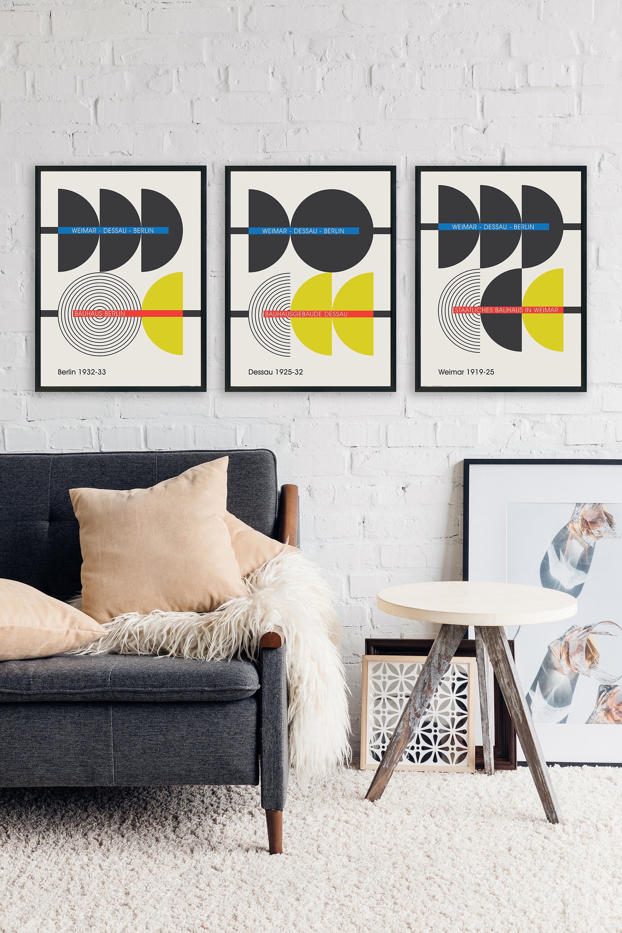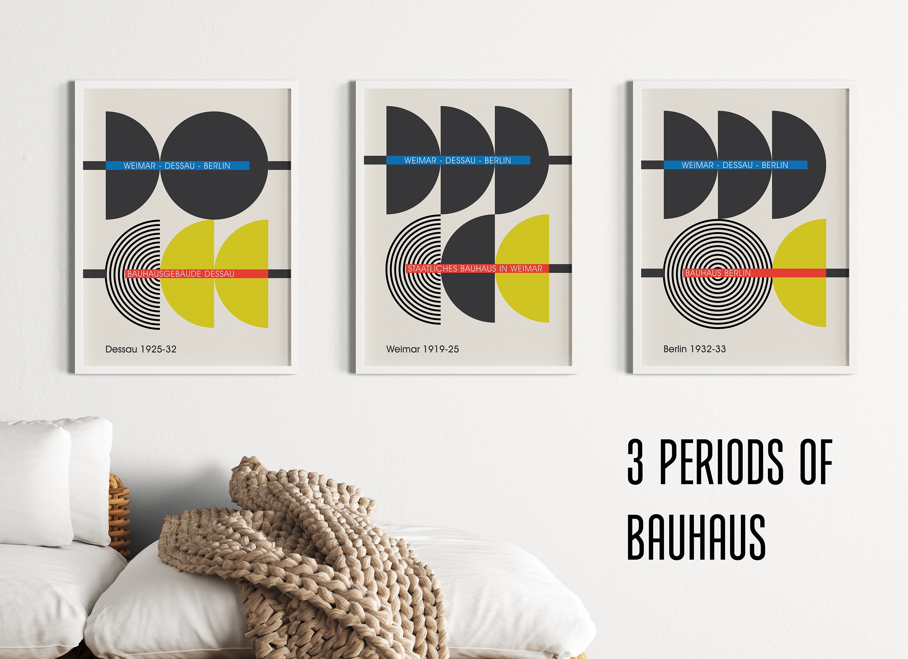 Welcome to my Etsy shop! I'm excited to present this set of 3 abstract and minimalistic poster designs that symbolically depict the three stages of the iconic Bauhaus school.