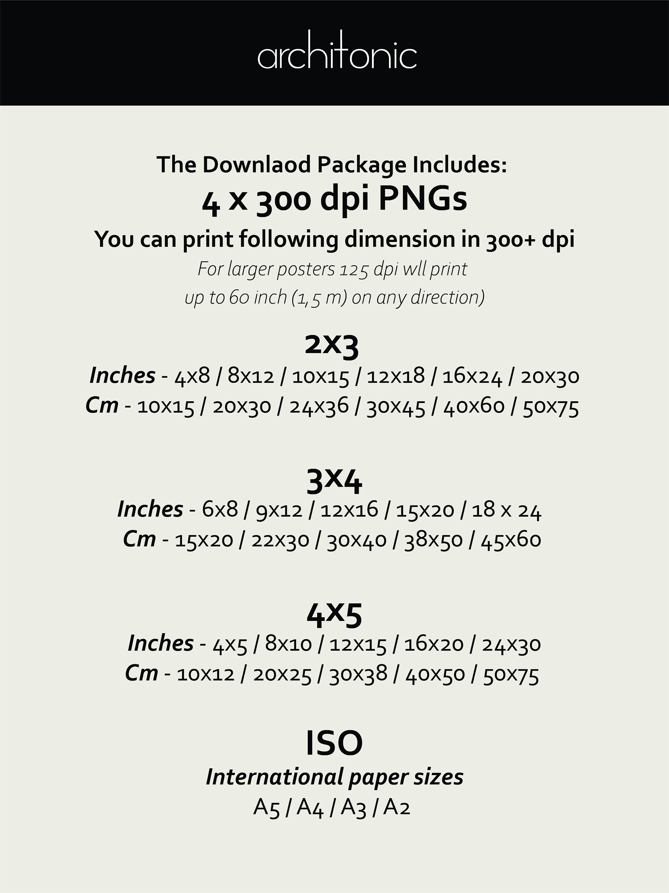 ★ You are going to get one design in 4 aspect ratios - 2:3, 3:4, 4:5, and ISO A2.