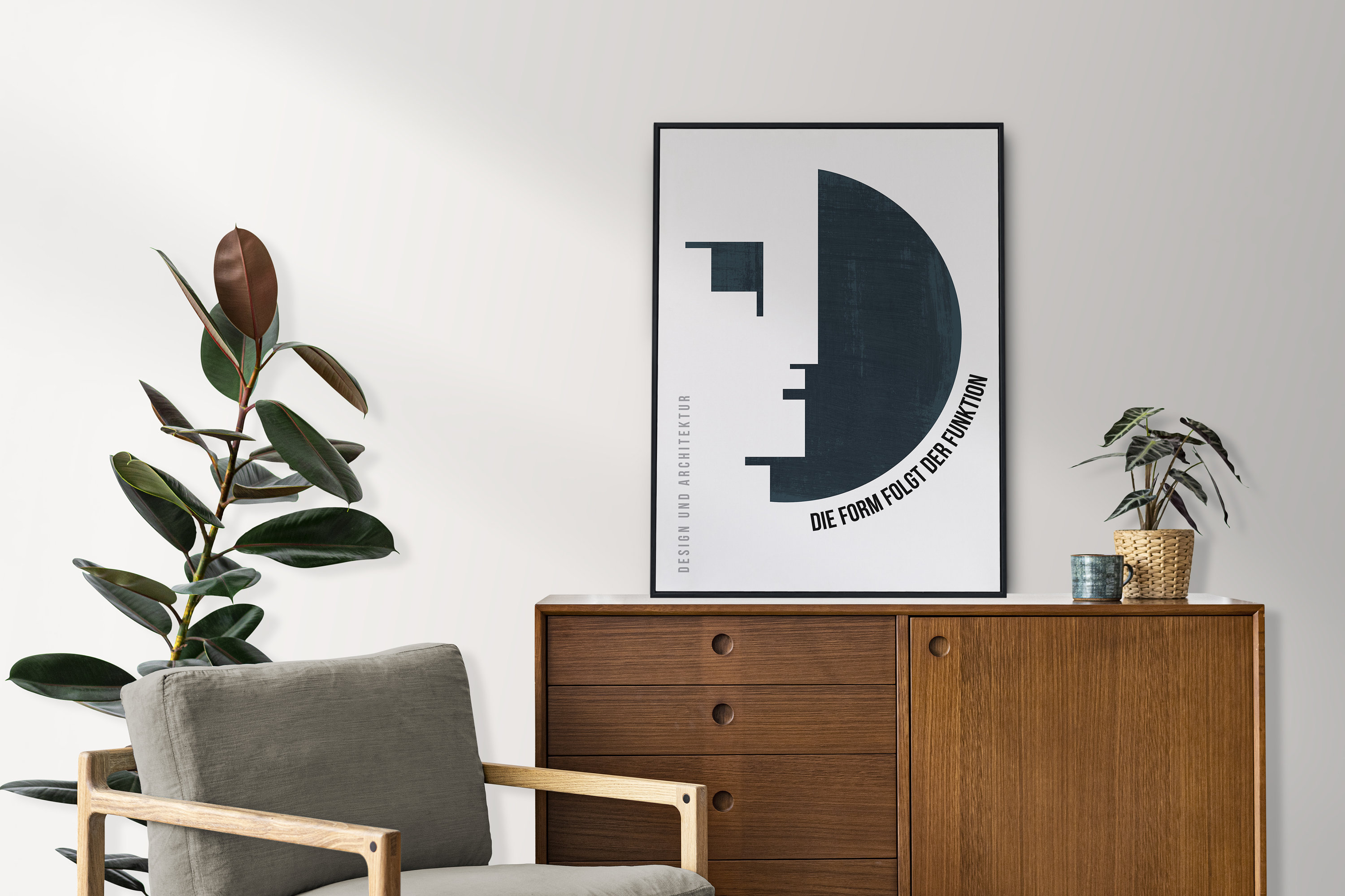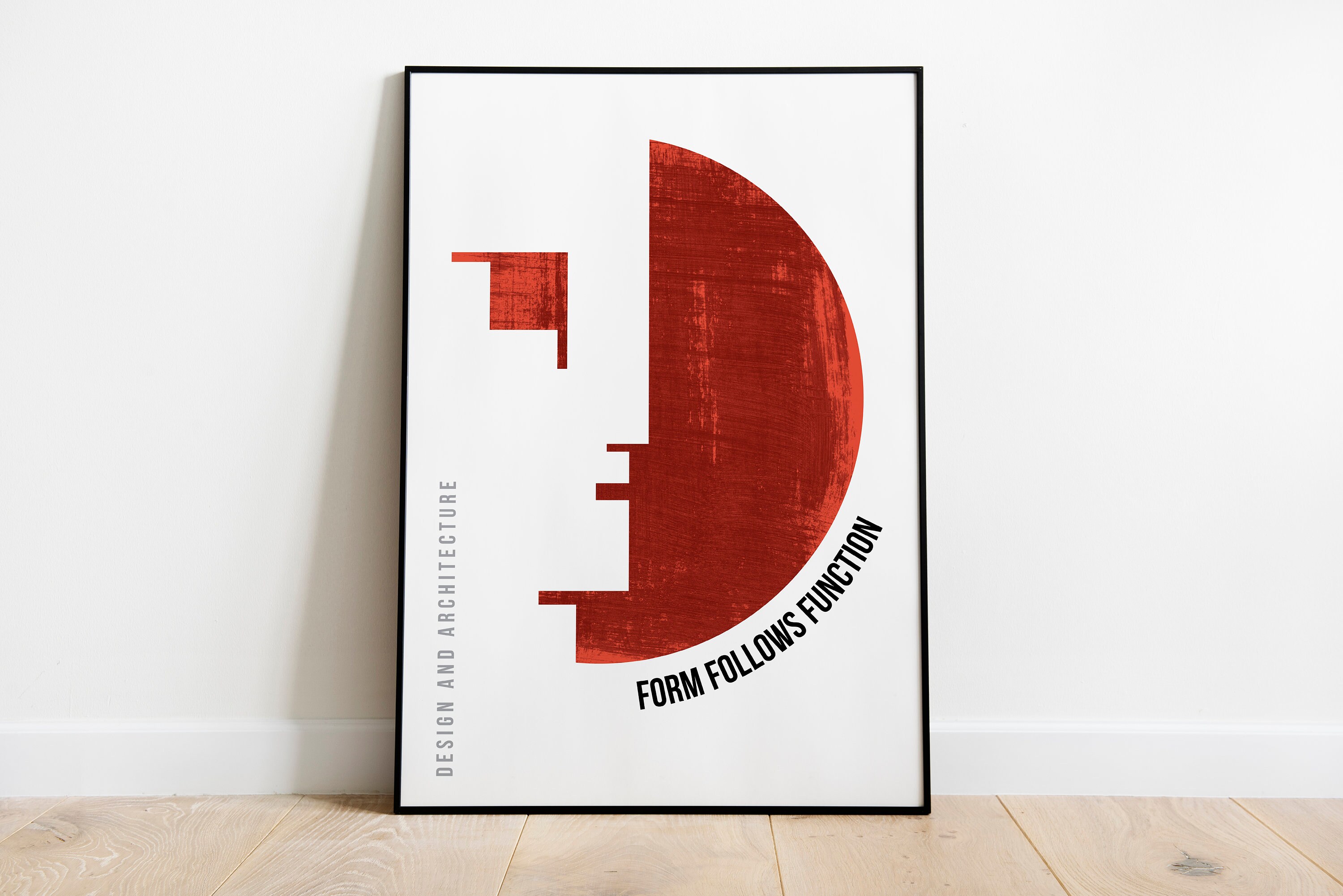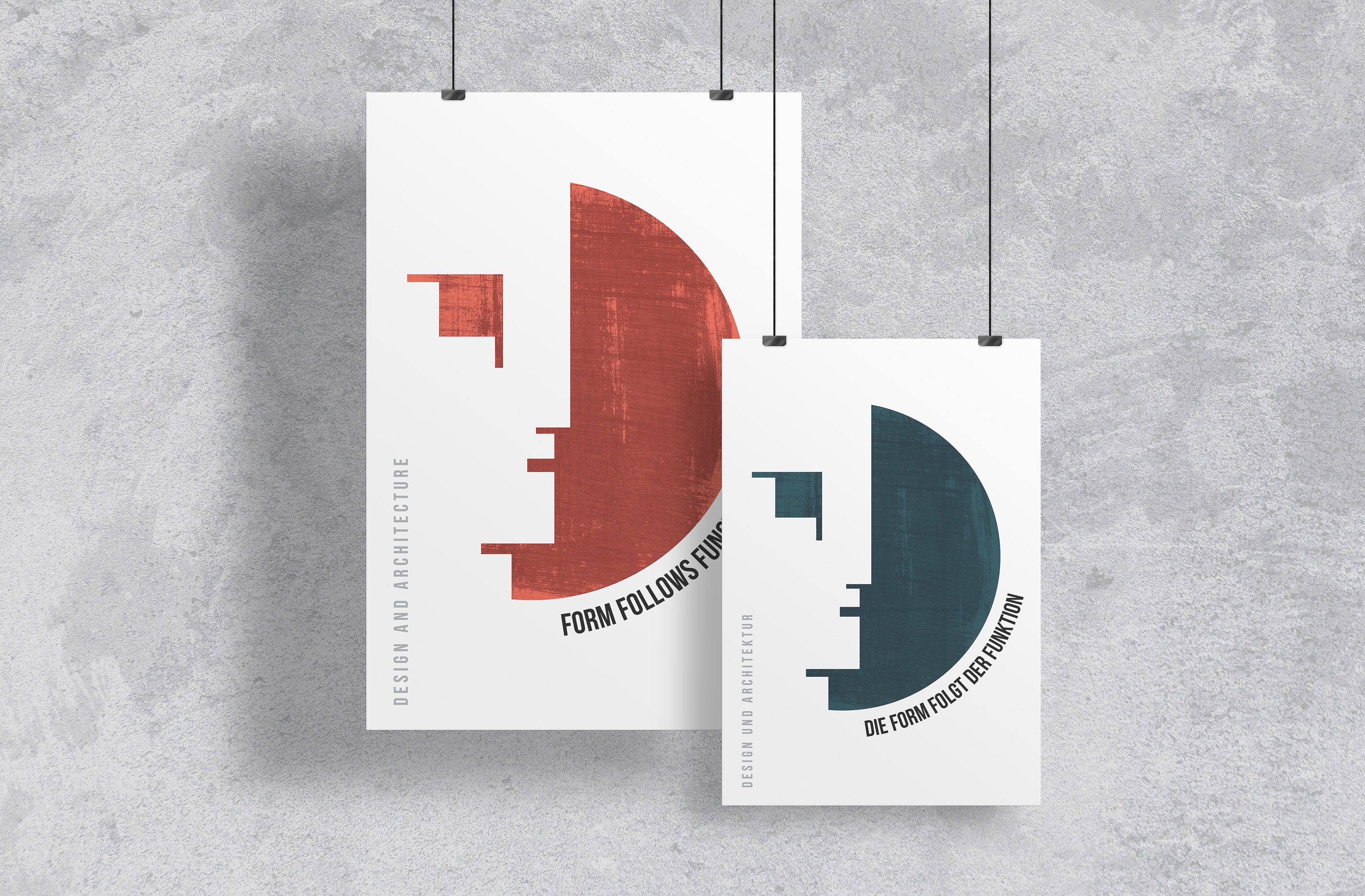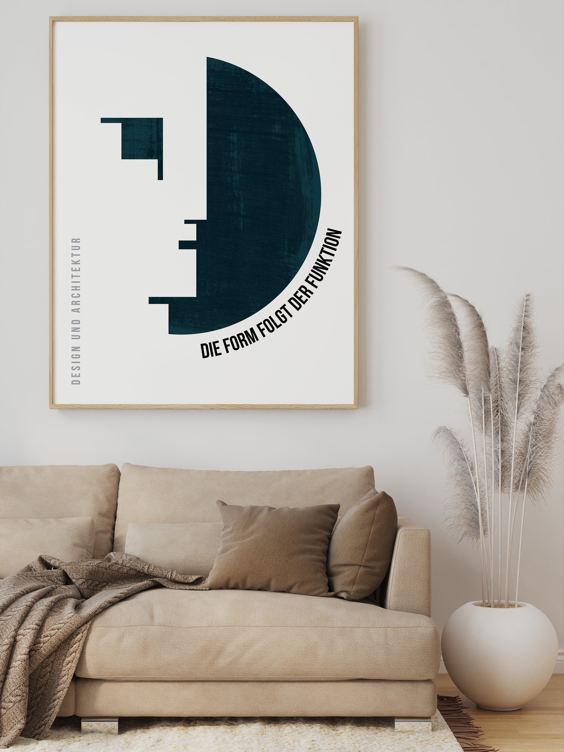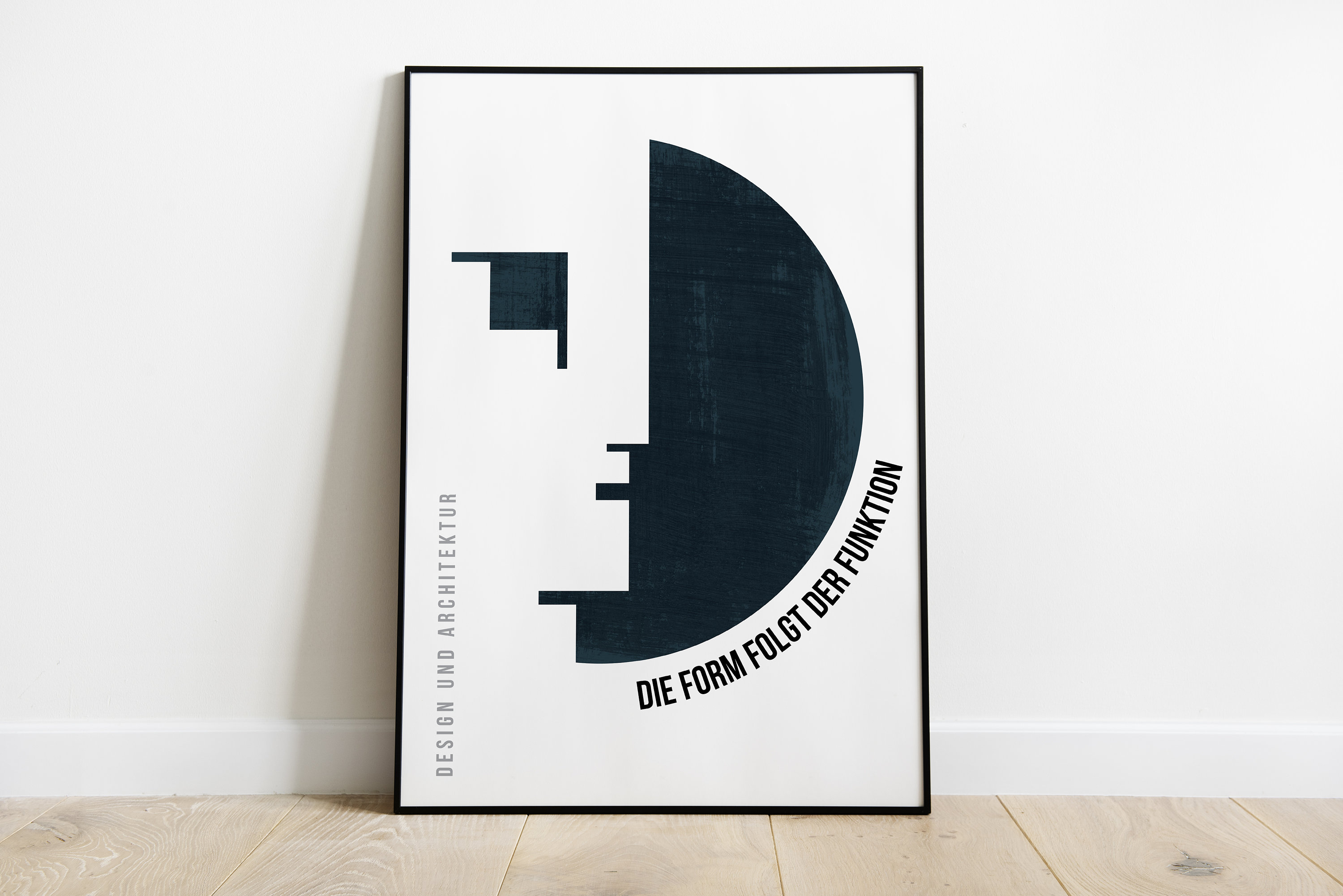 Minimalist Bauhaus face poster - Form Follows Function, in English and German (Die Form Folgt Der Function)
