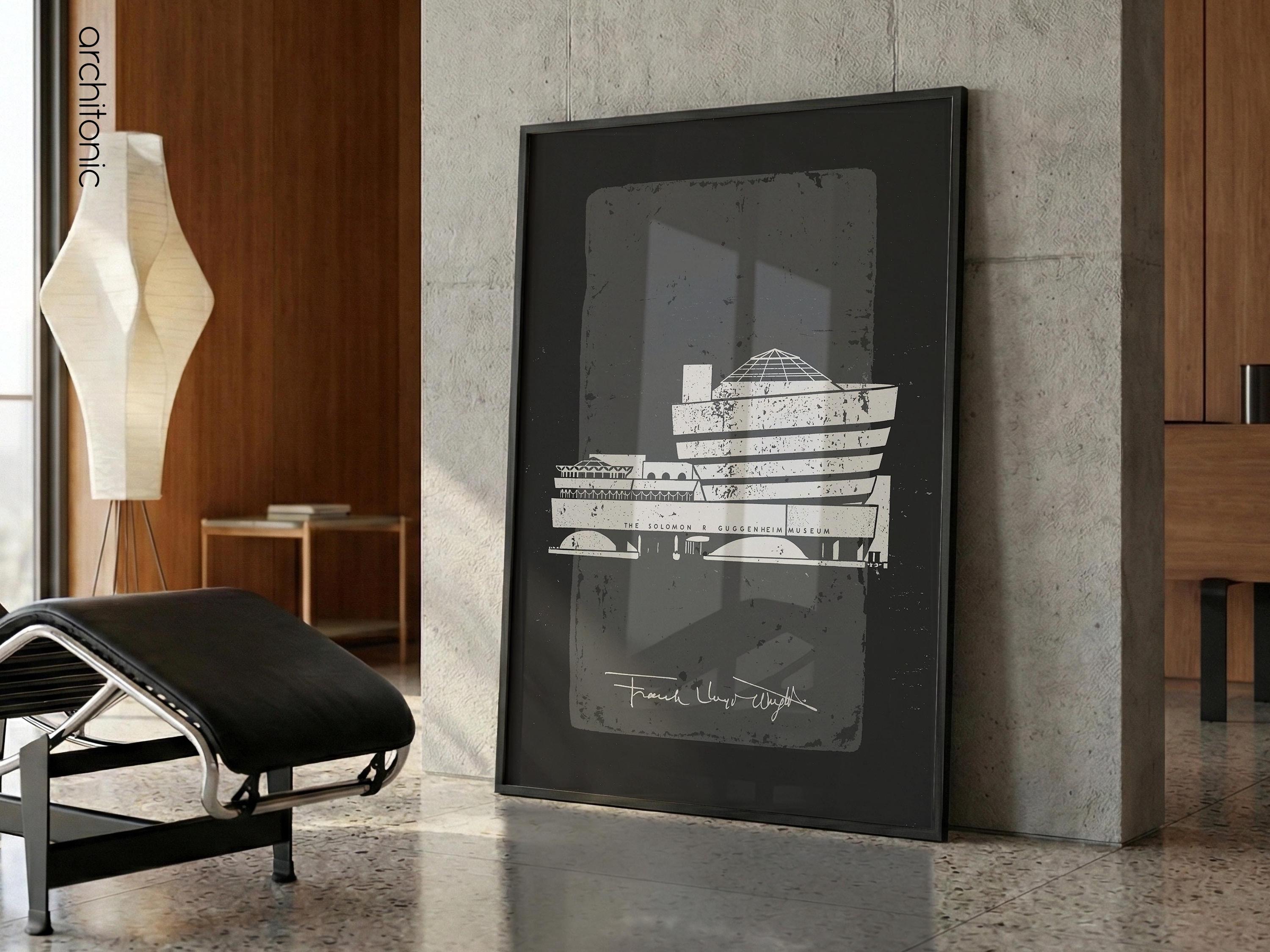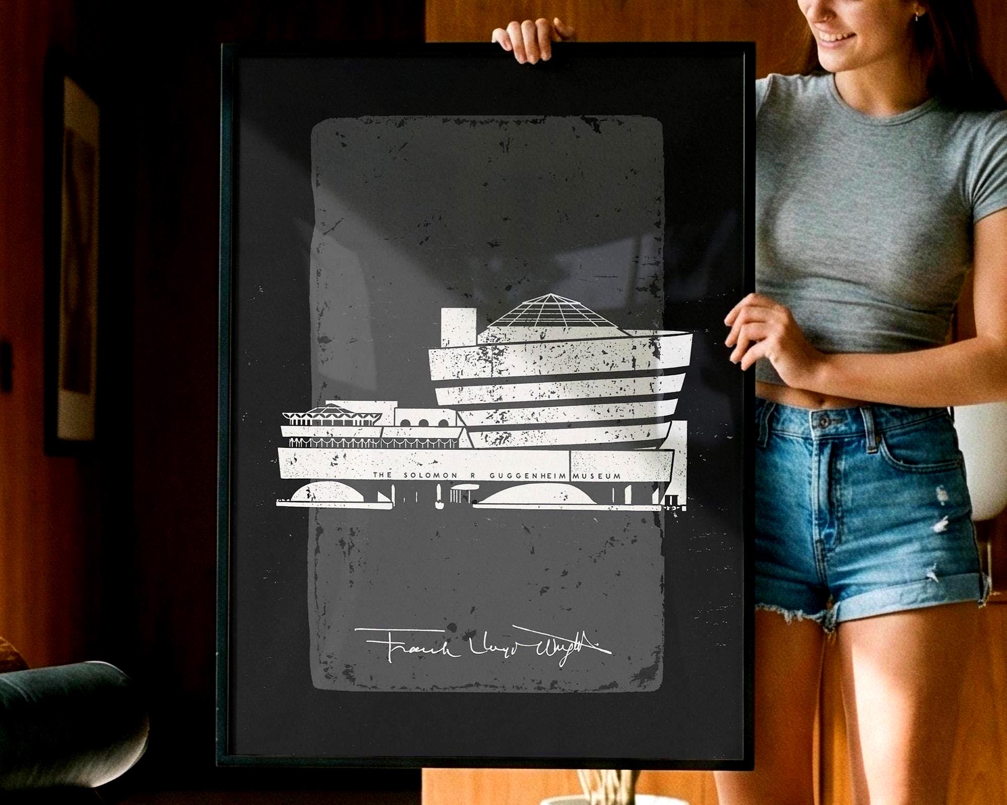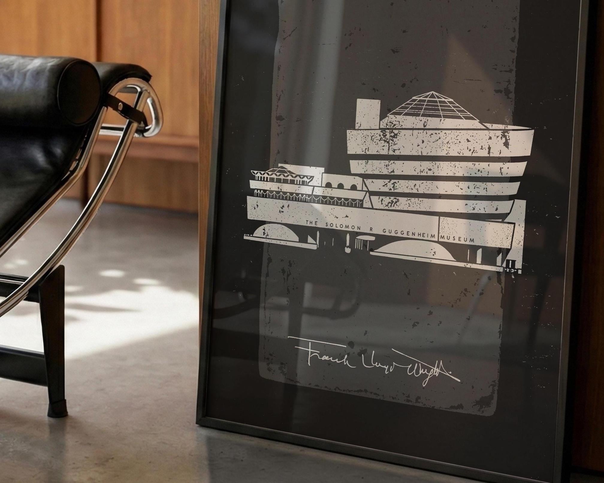 Bring a piece of architectural history into your home with this striking digital tribute to the Solomon R. Guggenheim Museum. This high-contrast, textured illustration captures the iconic curves of Frank Lloyd Wright’s New York City masterpiece. Perfect for an office, gallery wall, or a minimalist living room, this digital download offers a sophisticated "vintage blueprint" aesthetic with a modern, gritty twist.