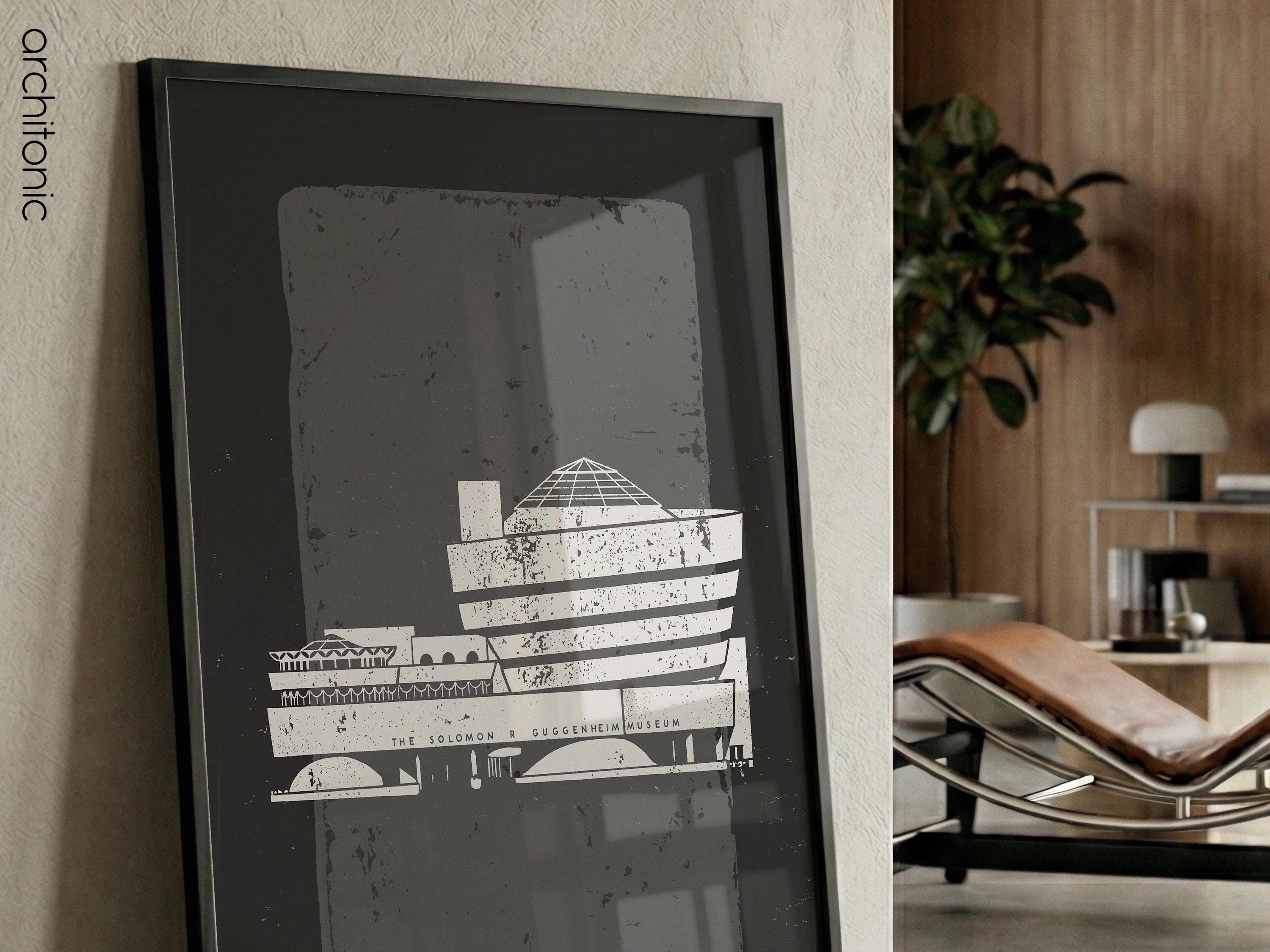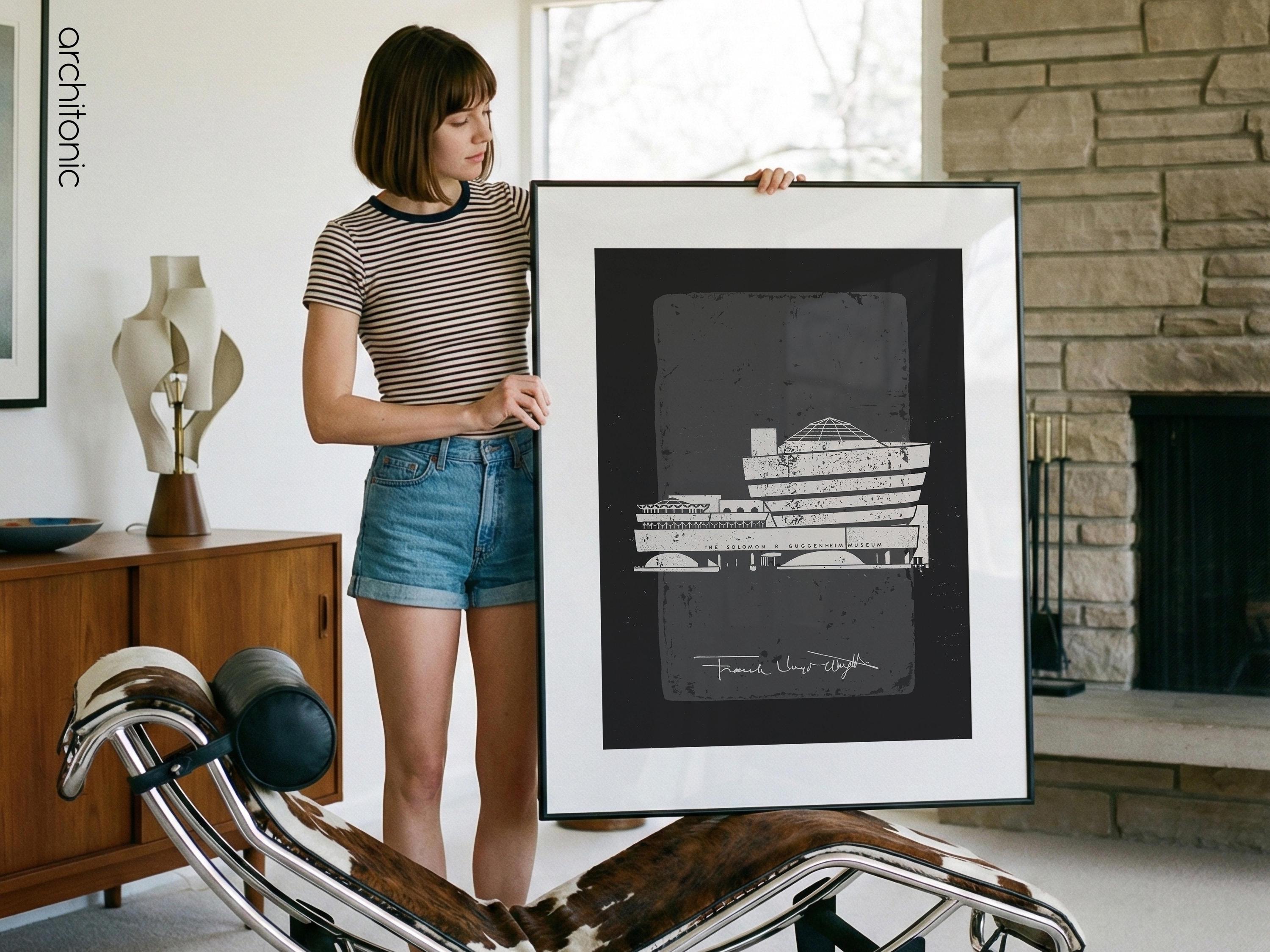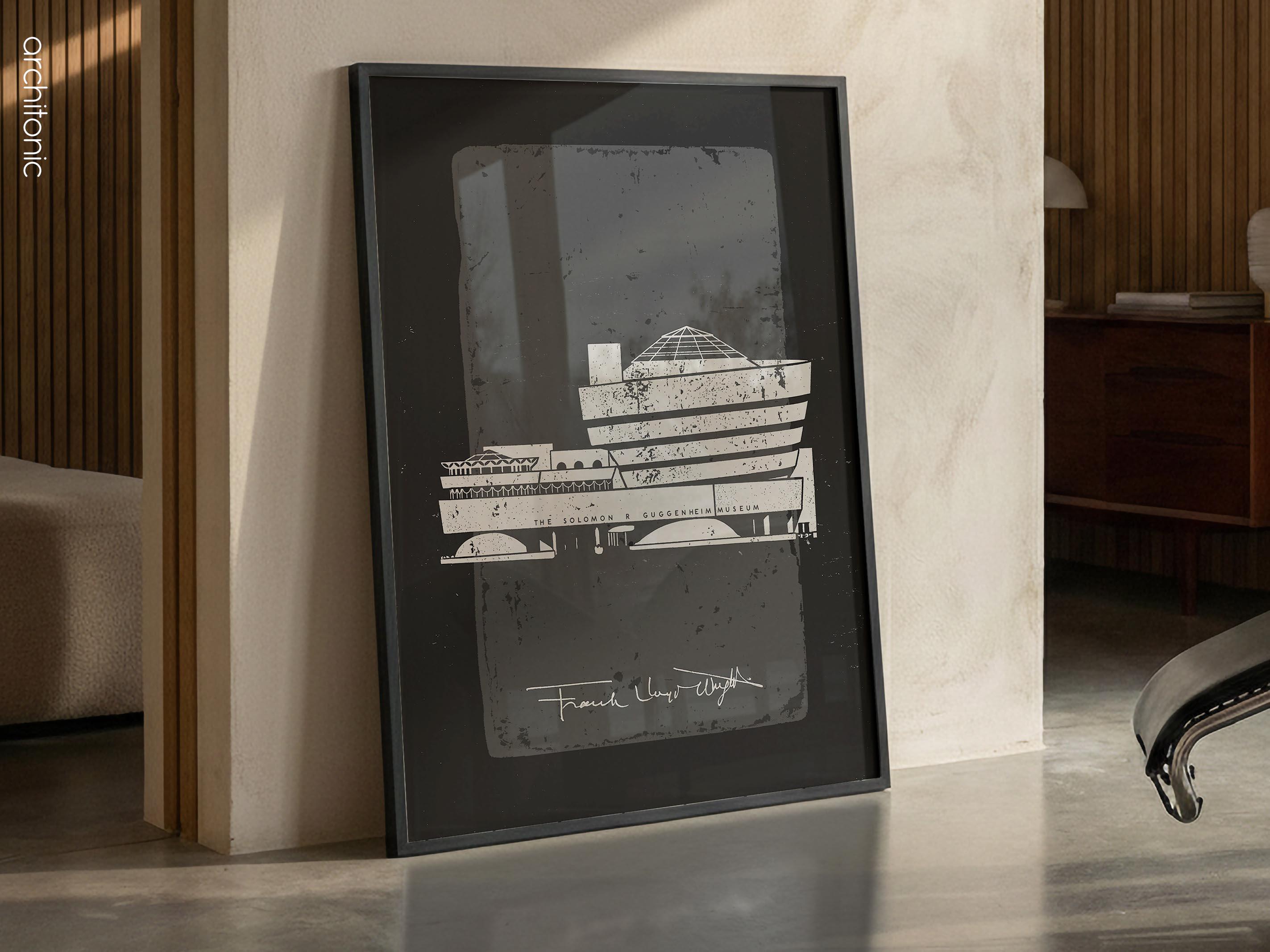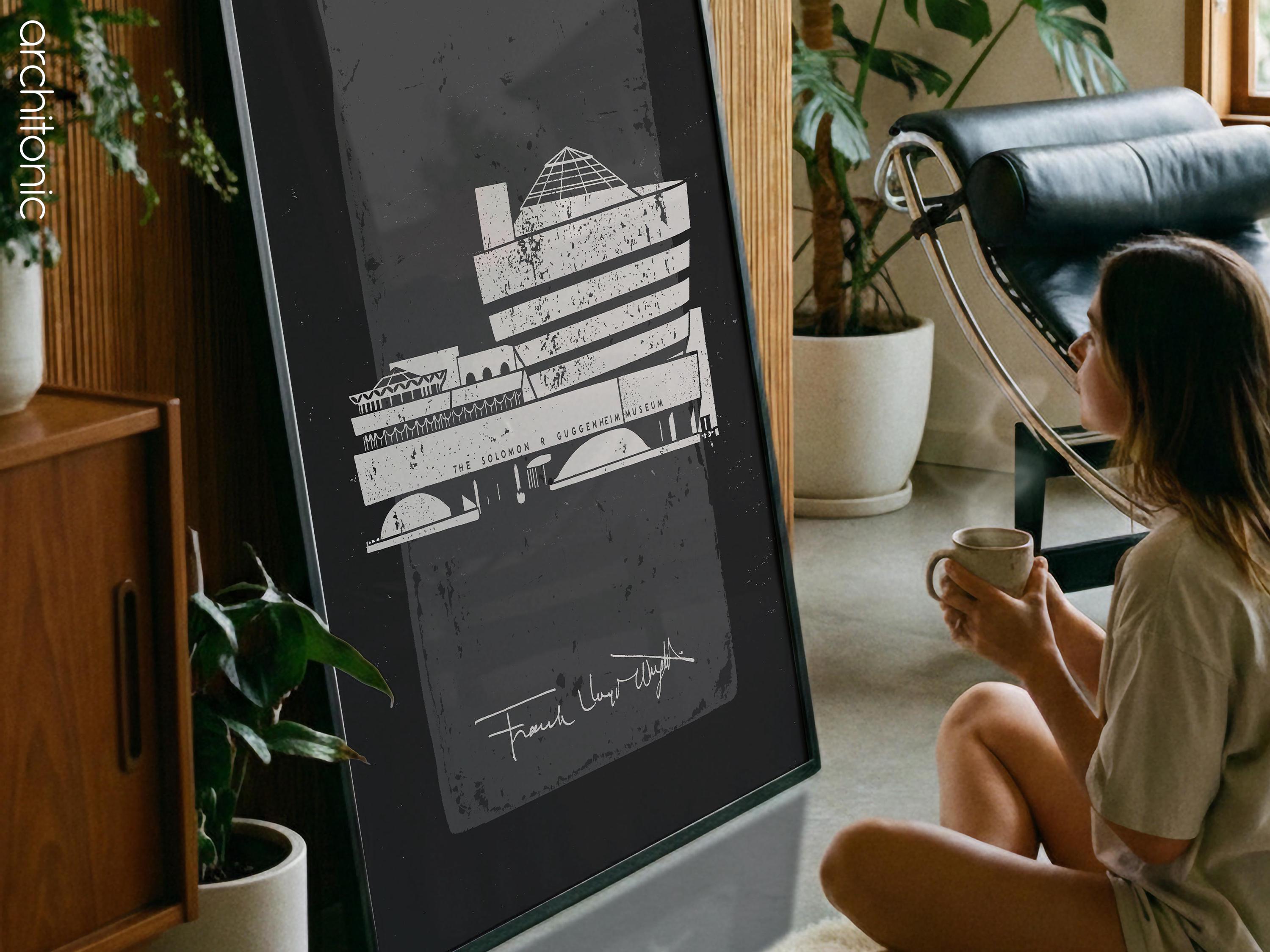 Bring a piece of architectural history into your home with this striking digital tribute to the Solomon R. Guggenheim Museum. This high-contrast, textured illustration captures the iconic curves of Frank Lloyd Wright’s New York City masterpiece. Perfect for an office, gallery wall, or a minimalist living room, this digital download offers a sophisticated "vintage blueprint" aesthetic with a modern, gritty twist.